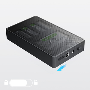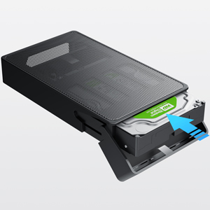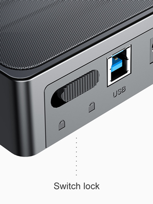 3.カバーを閉めて、ロックをかけるご注意ホットプラグはディスク交換後にPCを再起動する必要がないことを意味していますが、 データ損失を防ぐため、ディスクドライブの取り外しや交換を行う前にHDDケースの接続を外して電源をきってください。パッケージ:SA01003×1電源アダプタ×1USB ケーブル×1