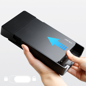 HDDの取り付くと取り外し方法1.ロックを解除して、カバーを引き出す2.HDDをケースに入れる